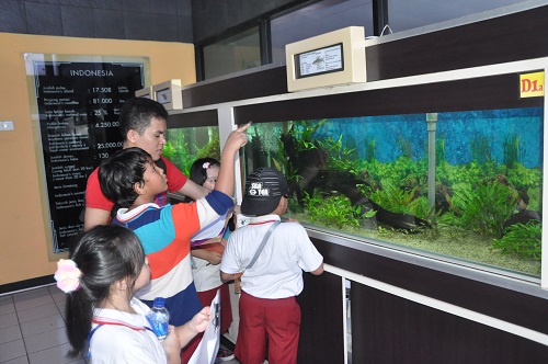 Visiting The Freshwater Aquarium Park (TAAT) certainly had its own impression for the students, because they can feel like they were taken to the underwater world that has various kinds of marine life and various types of aquatic living creatures such as various types of fish, turtles and others. One of the exciting activities were fish feeding, the students threw fish food into the pond and watched the fishes fighting for their food.