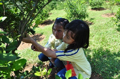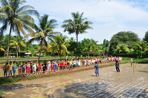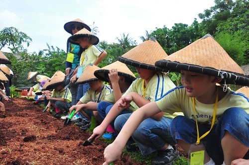 ‘Mekarsari’ Fruit Park has also been named as one of the largest tropical fruit biodiversity conservation centers in the world. They collect superior types of fruits from all regions in Indonesia. The activities of the students at ‘Mekarsari’ included painting farmer’s hat or ‘caping’, planting rice and also bathing the buffalo.