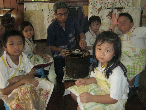 The Jakarta Textile Museum keeps many kinds of Indonesian traditional textiles. The students can see Indonesian traditional weaving such as Javanese batik, Batak ulos, and ikat. There are also displays of traditional weaving instruments and equipment for textile production. The students then were given a try to make their own Batik handkerchief.