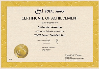 English International Certification on TOEFL Junior Test for our Primary 6 students. Most of our students can achieve 450-550 of TOEFL score.