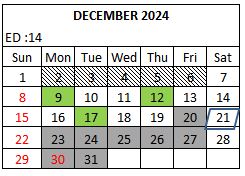 | 23 | : Semestral Break & Christmas Holiday | |||